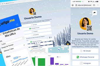Con URLGO.me organizas desde tu panel los datos y canales de contacto y comparte con amigos, clientes, y empresas. Comparte Correos, teléfonos, y Redes Sociales. Coloca tu Marketplace, Catálogos de Venta o Tienda Ecommerce.