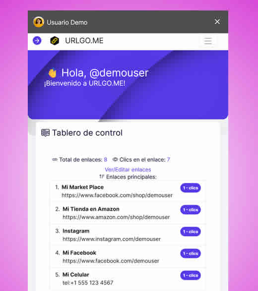 Tus enlaces importantes en un solo lugar y listos para compartir. Con URLGO.me, creás tu página de perfil con enlaces a redes, tiendas, WhatsApp, formularios,etc. Ideal para colocar en Instagram, TikTok y firmas.